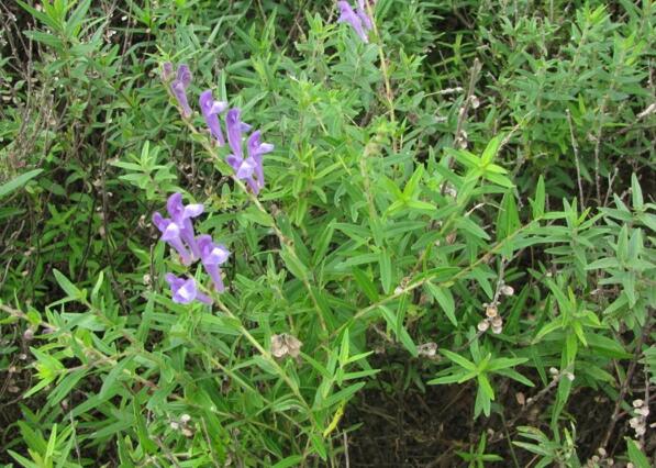 黃芩是多年生草本植物,植株高有30-120厘米,葉如披針形,花生于莖頂端或是枝上,花冠有紫色、紫紅色以及藍色。