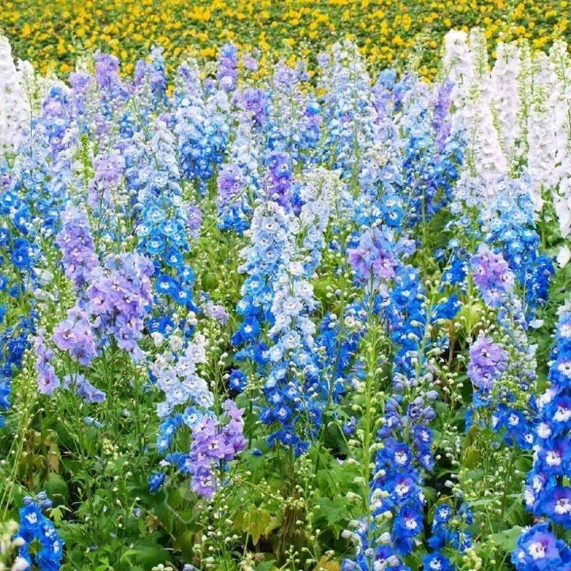 飛燕草植株較高,花朵比較小,成串生長,密集的遍布花桿上,花色主要有藍色、粉色、白色、紫色等,清新亮麗,非常討喜,這種花卉多種植于公園、景區(qū)等地。